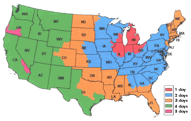 Click on this map to estimate shipping time for orders shipped via Standard UPS Ground
